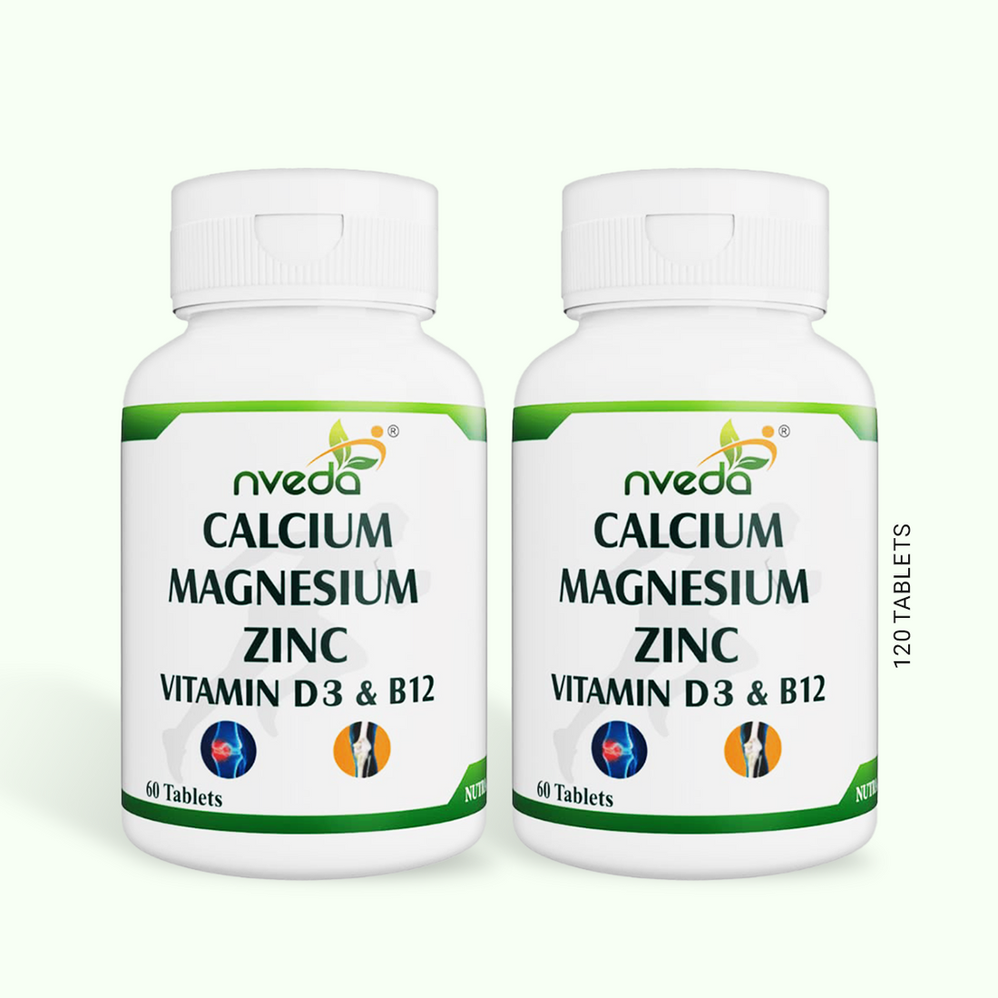 Nveda Calcium, Magnesium, Zinc, Vit D3, K2 and B12 - Pack of 2 - 120 Tablets